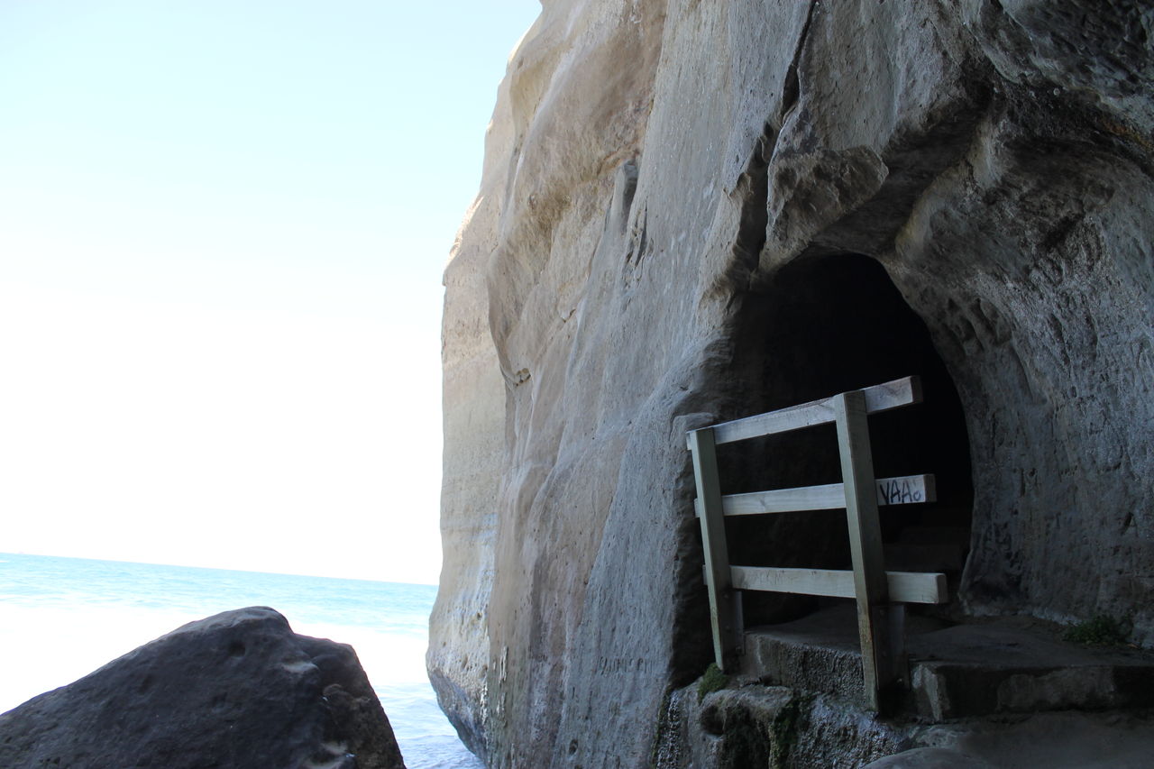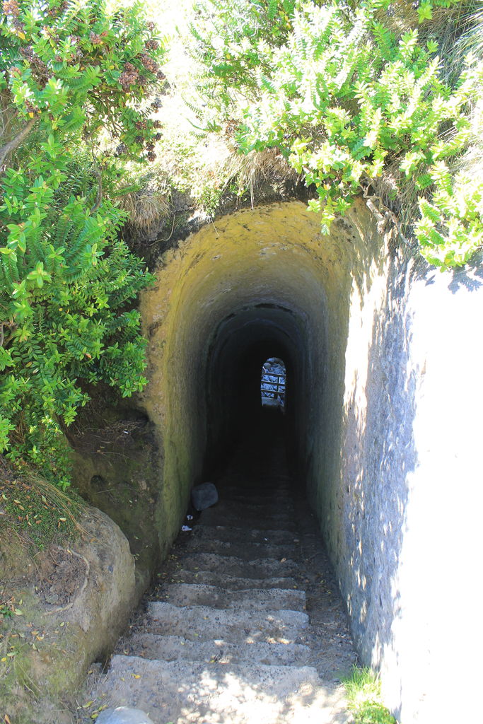 The tunnel descends 72 steps to the beach, and is dimly naturally lit.