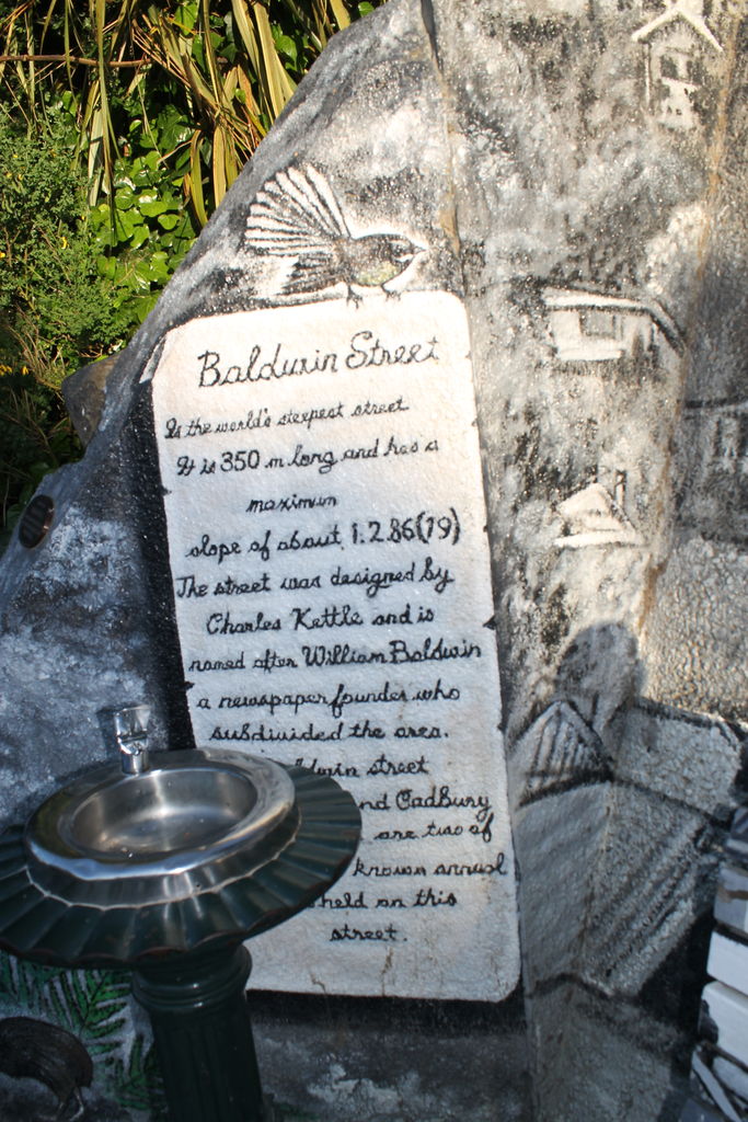 ボールドウィン・ストリートは、ニュージーランド南部の都市ダニーデン郊外の住宅地にある街路です。全長350mあります。急勾配の場所は頂上から約70メートル下った所にあり、最大勾配は35%です。ギネスブックに「世界一急な街路」(the steepest street in the world)として認定されています。
