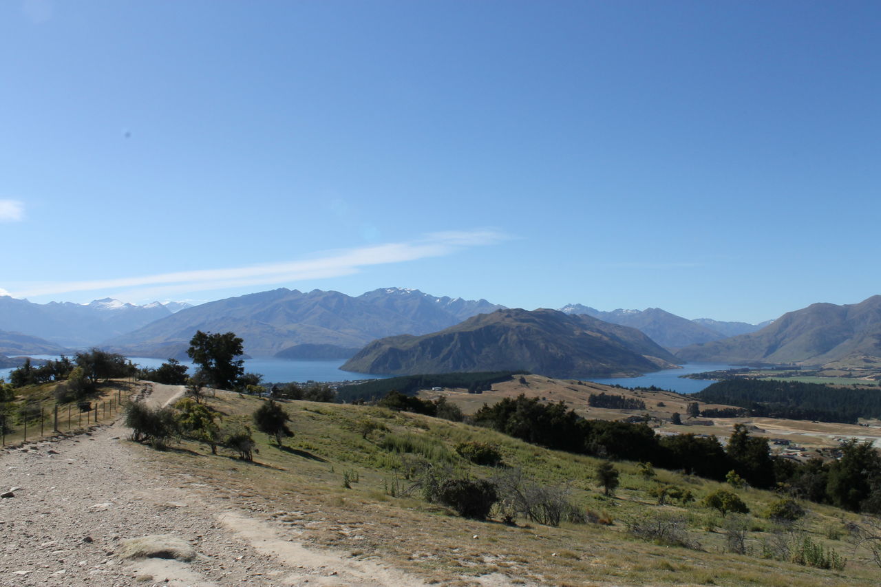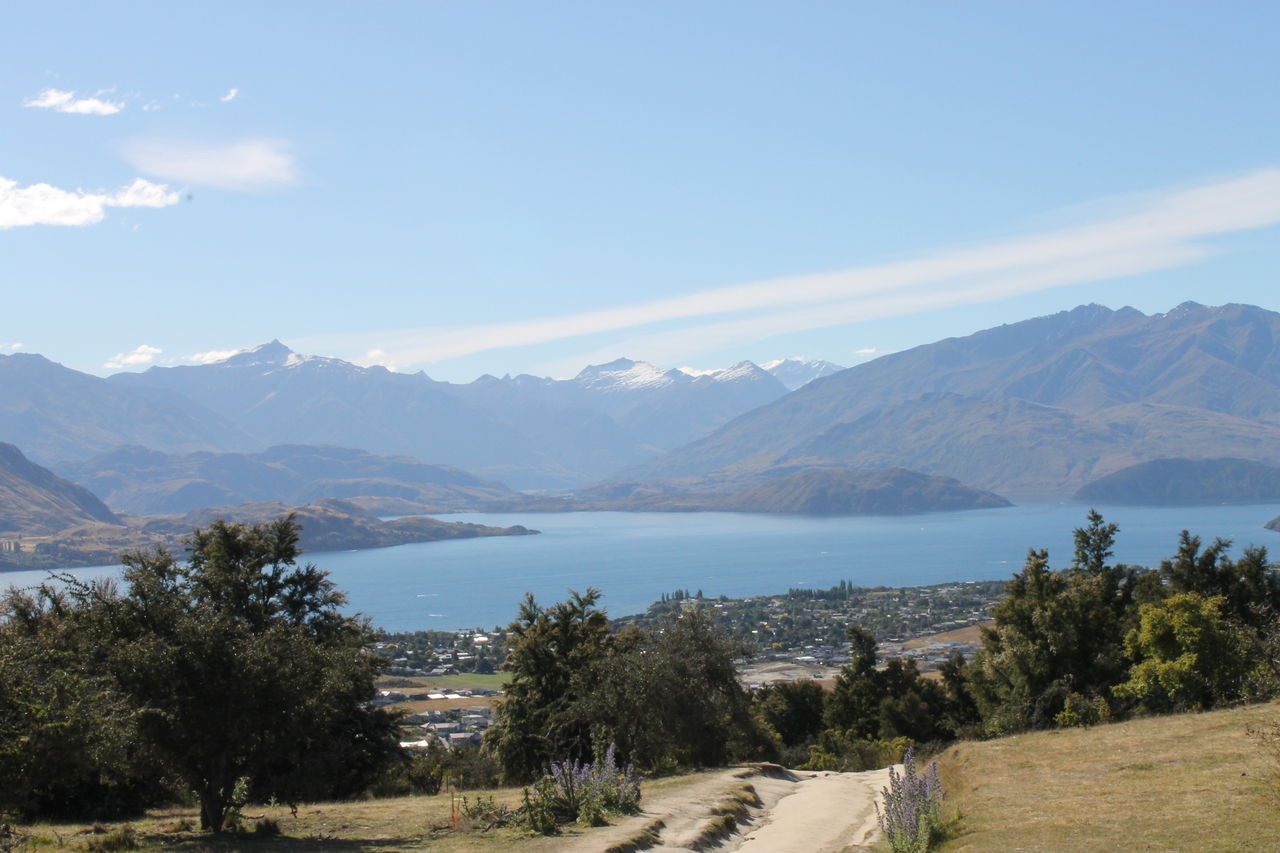 頂上からの景色です。ワナカ湖がとても綺麗でした。頂上は結構広いので、ここでゆっくり過ごしました。体力に自信のある方は、 標高1578mのロイズ・ピーク・トラック(往復16km)を挑戦されてみてください。